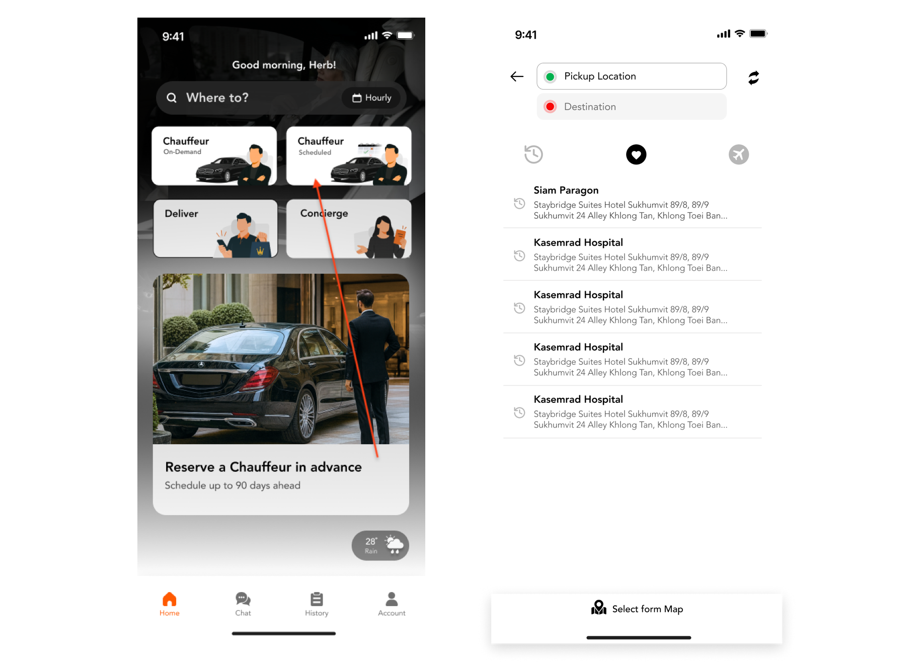 Start from the home screen and tap on the "Chauffeur Scheduled" option.