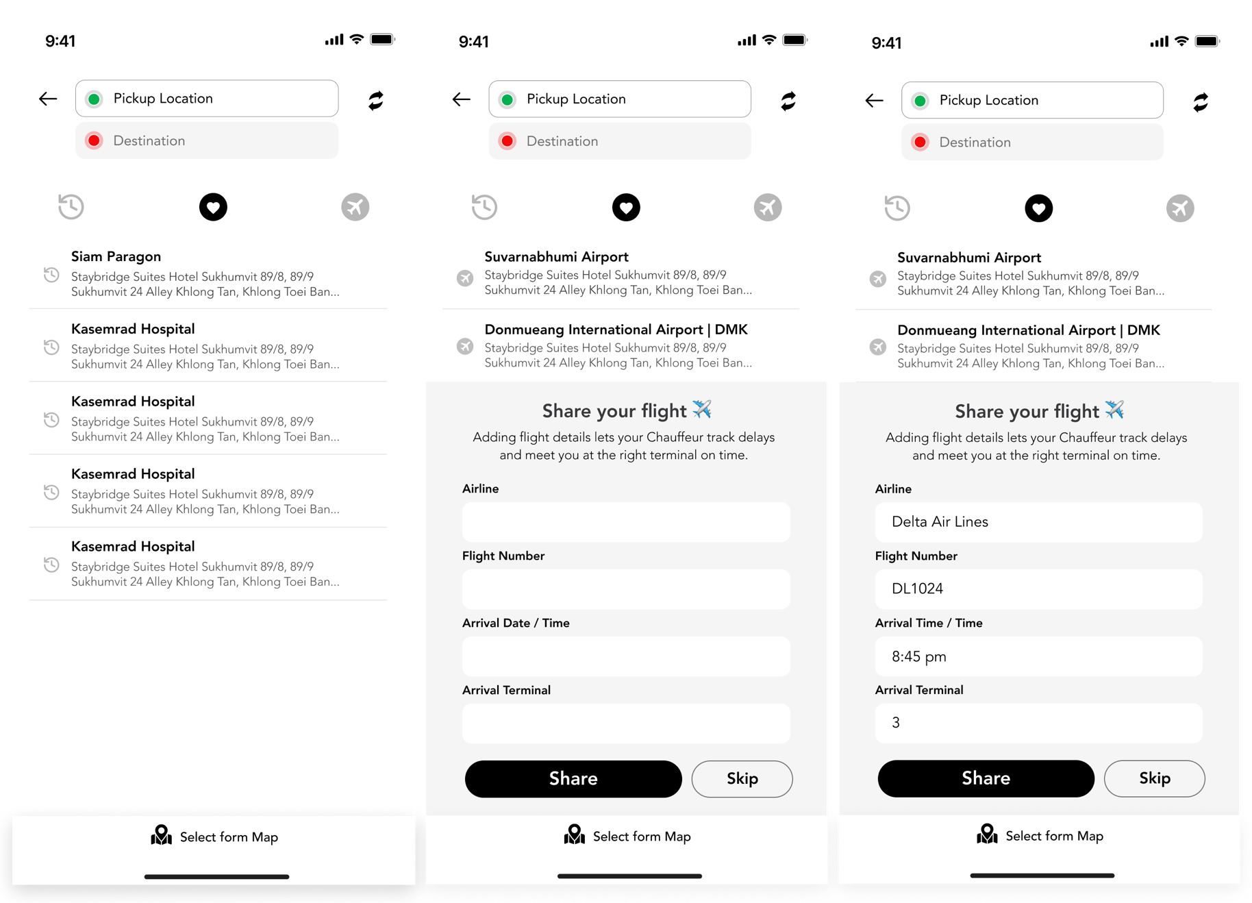 - While booking, you can also share your flight details — including airline, flight number, arrival date/time, and terminal.