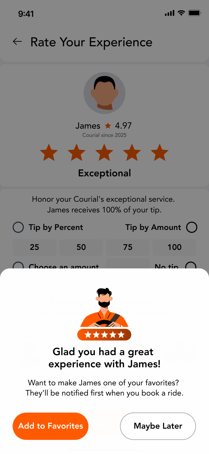 Courial lets you save chauffeurs you love and prioritize them for future rides. When you book, your favorite chauffeurs can be notified first—so you’re more likely to ride again with someone you trust.
