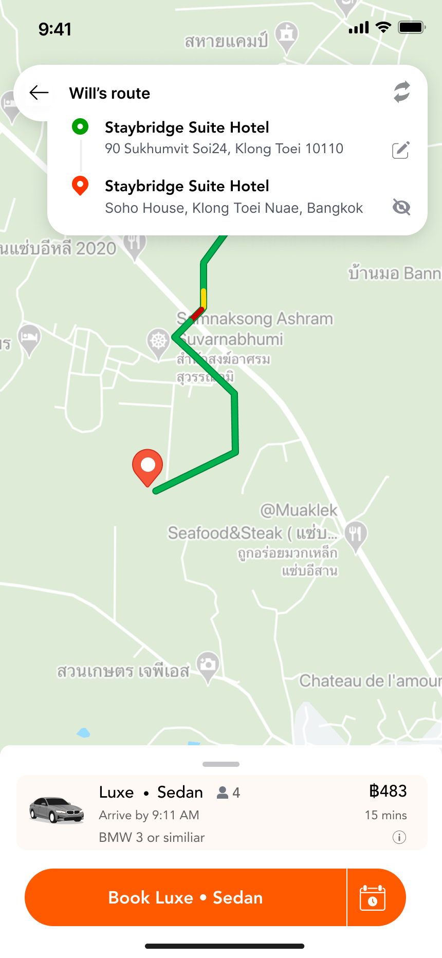 - Review your route and select a ride class.