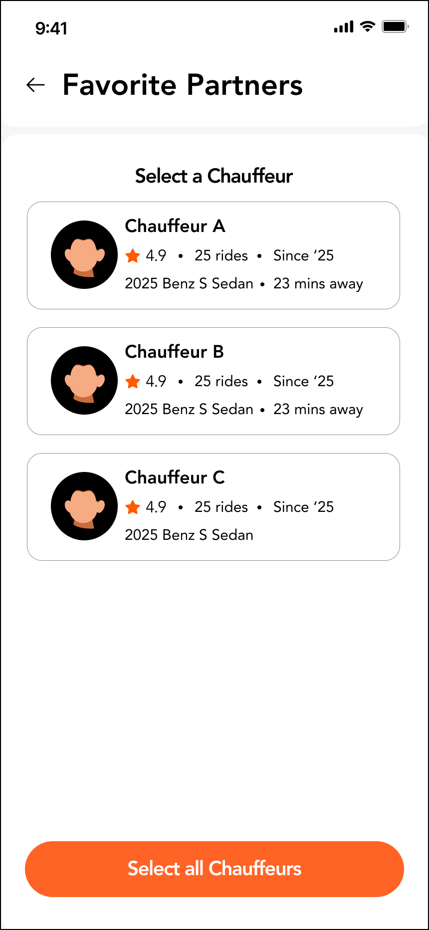 - Select one specific favorite chauffeur, or