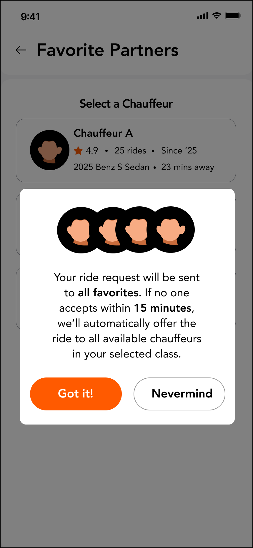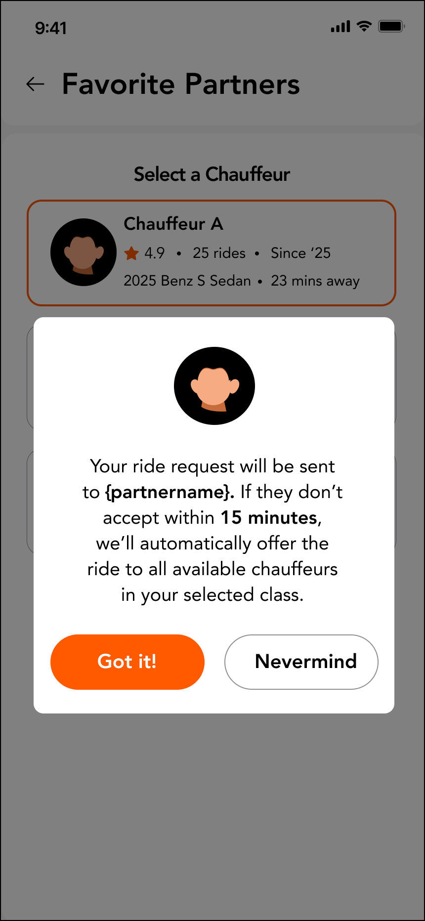 - If a favorite chauffeur accepts, they’ll be assigned to your ride